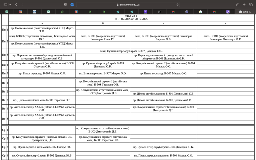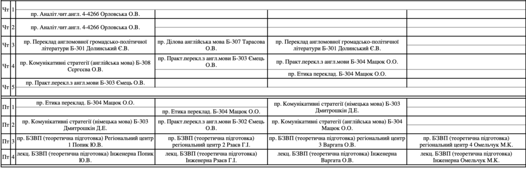 • Розклад занять