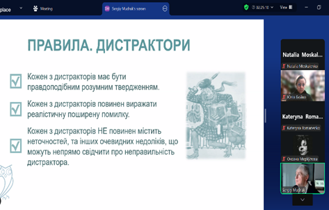- Розробка тестових завдань: створення автентичних та валідних кейсів для перевірки лінгвістичної компетентності майбутніх магістрів.